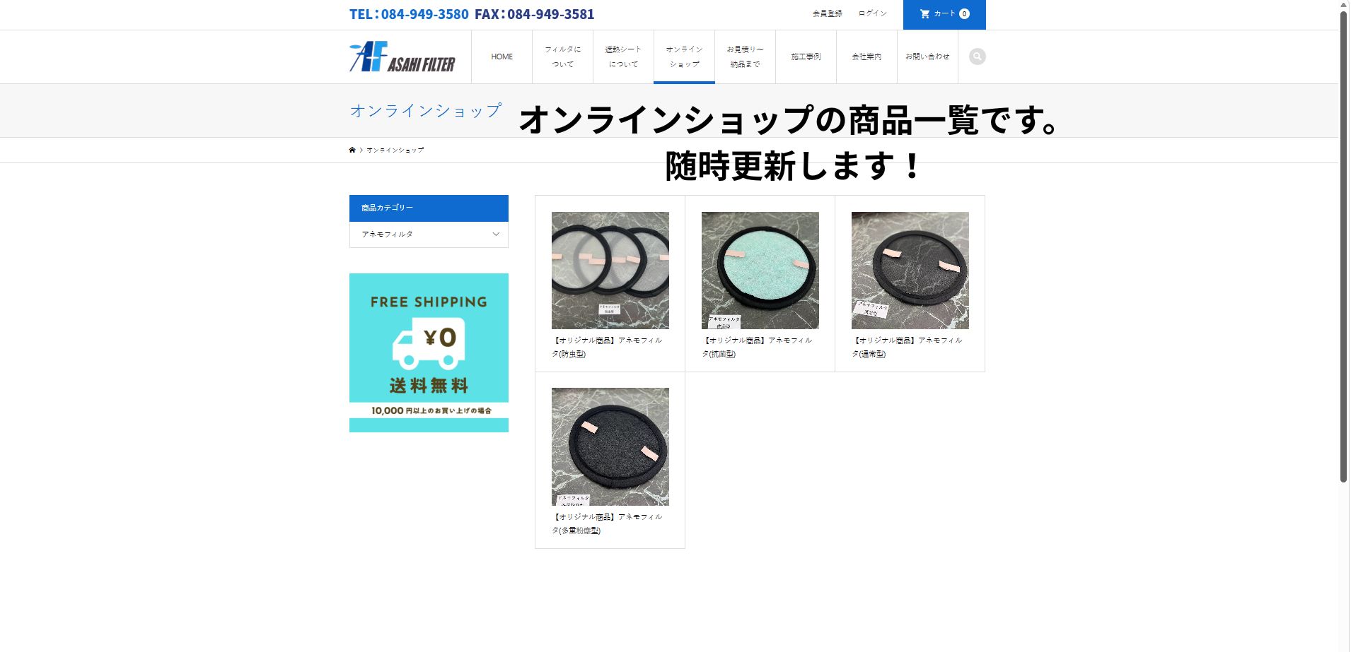 【オンラインショップ再開しました】フィルタ製品をご注文いただけます