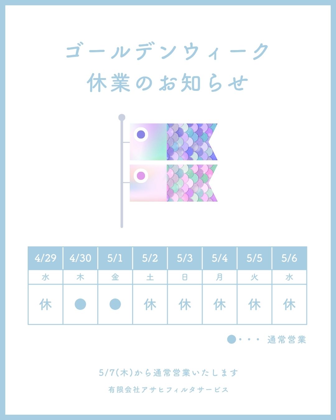 【ゴールデンウィーク休業のお知らせ】