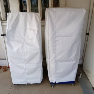 • 白色ターポリン生地を裁断し、立体的に縫製